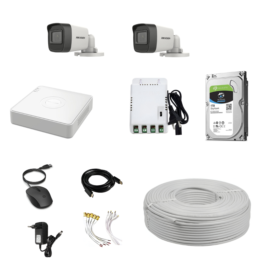 • The Hikvision 2MP 2 Bullet CCTV Camera Kit is a complete and professional surveillance solution designed to deliver reliable security for homes, businesses, shops, offices, and outdoor areas. This all-in-one package includes 2 Hikvision 2MP Bullet Cameras, a 4-Channel DVR, 500GB surveillance hard disk, 4CH SMPS power supply, DC & BNC cables, and 2 PVC junction boxes for secure installation.